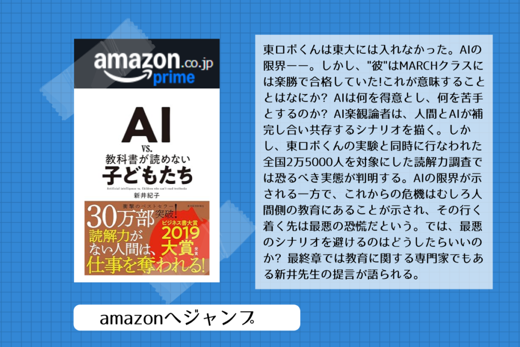 少し前に『AI vs. 教科書が読めない子どもたち』という本が話題になったよね。