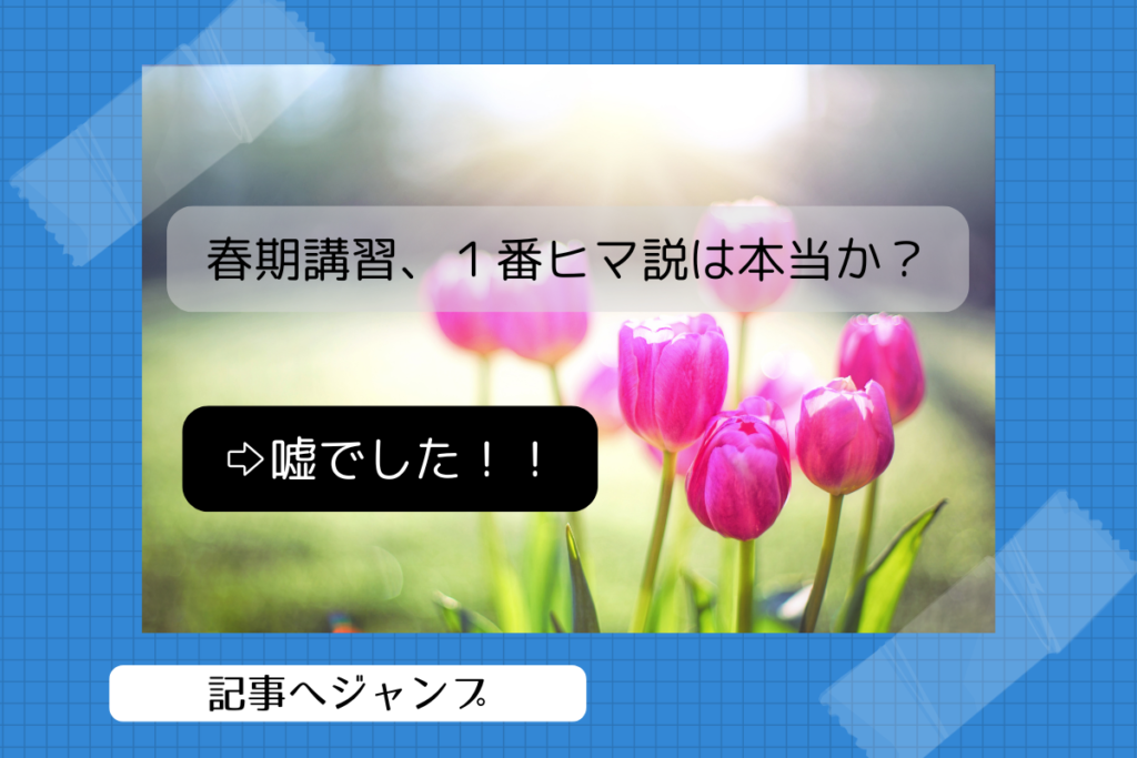 春休みって塾業界、なかなかヒマなのよ実は(笑)